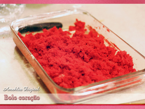 12. Agora preencha as duas partes com o bolo vermelho reservado (esfarelado).